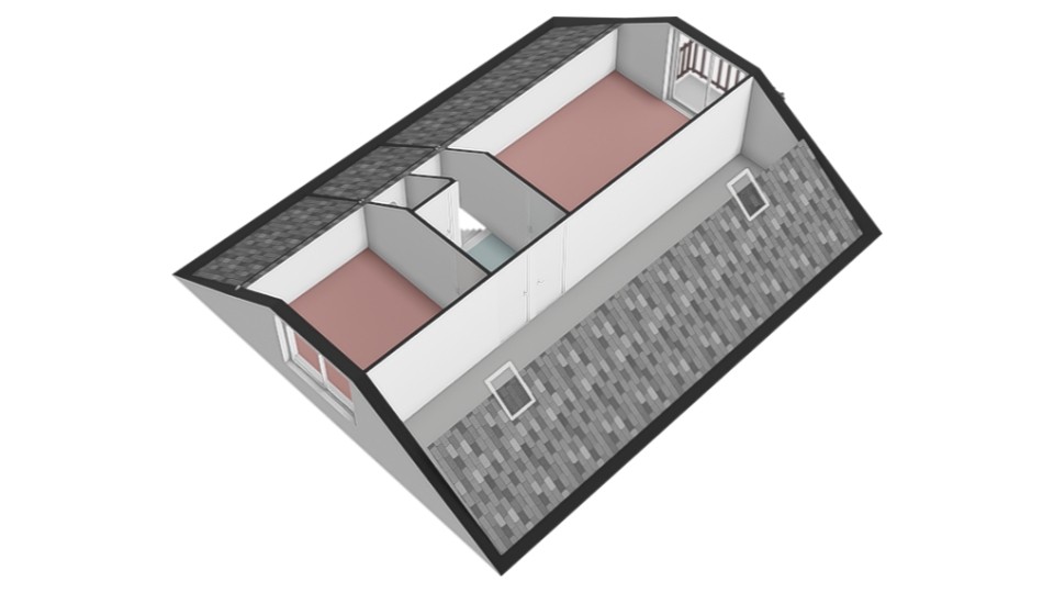 overloop, separaat toilet met fonteintje, twee ruim bemeten slaapkamers, berging