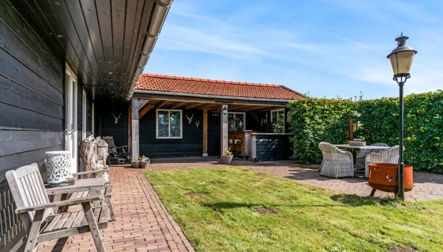 Ook treft u een sfeervolle veranda met bar. Een heerlijke, beschutte plek om te genieten van de zon, te ontspannen met een goed boek of om samen met vrienden en familie te barbecueën.