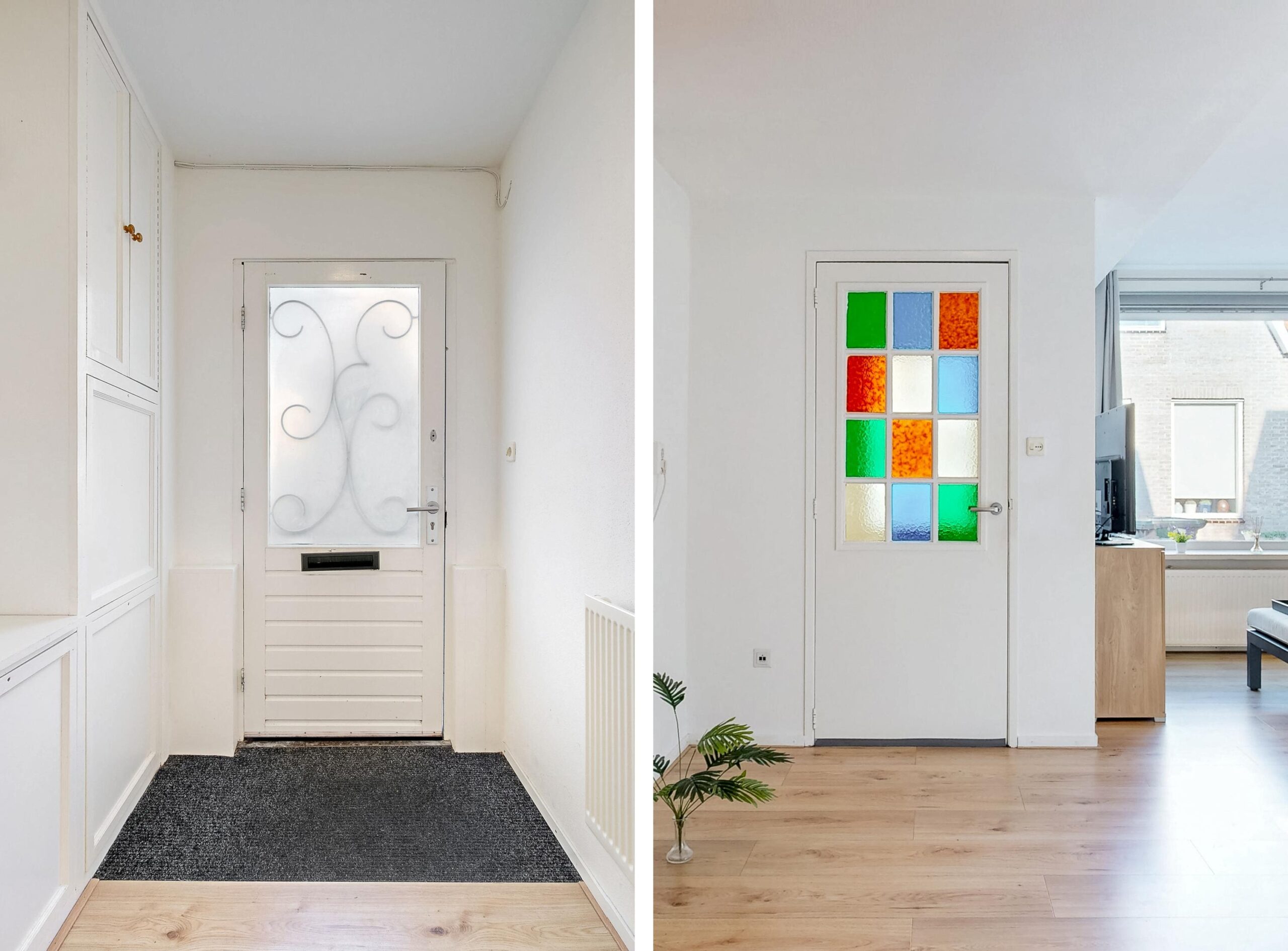 Het eerste appartement verwelkomt u met een ruime hal en een moderne meterkast. De lichte woonkamer staat in open verbinding met de keuken, voorzien van een vaatwasser, afzuigkap en gaskookplaat. Verder beschikt dit appartement over een badkamer met douche, separaat toilet, slaapkamer, praktische bergruimtes en een achtertuin, ideaal voor zon, ontspanning of hobby’s.