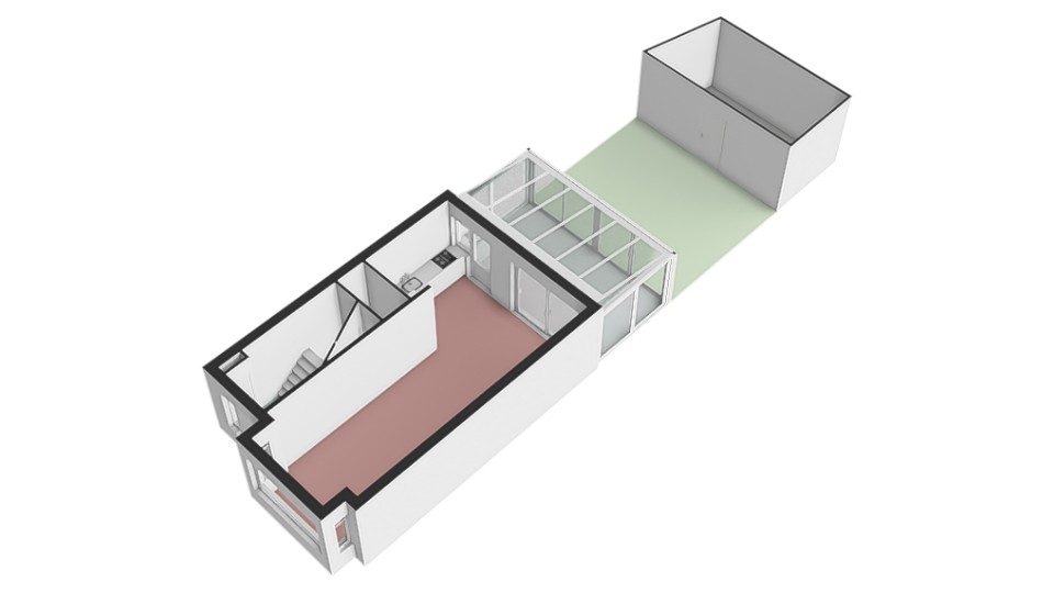 entree, meterkast, kelderkast, toilet, lichte woonkamer met laminaatvloer, schuifpui aan de achterzijde en een erker aan de voorzijde, open keuken met inbouwapparatuur (afzuigkap, inbouwkoelkast en gaskookplaat), toegang tot serre in de achtertuin met vrijstaande houten schuur met elektra.